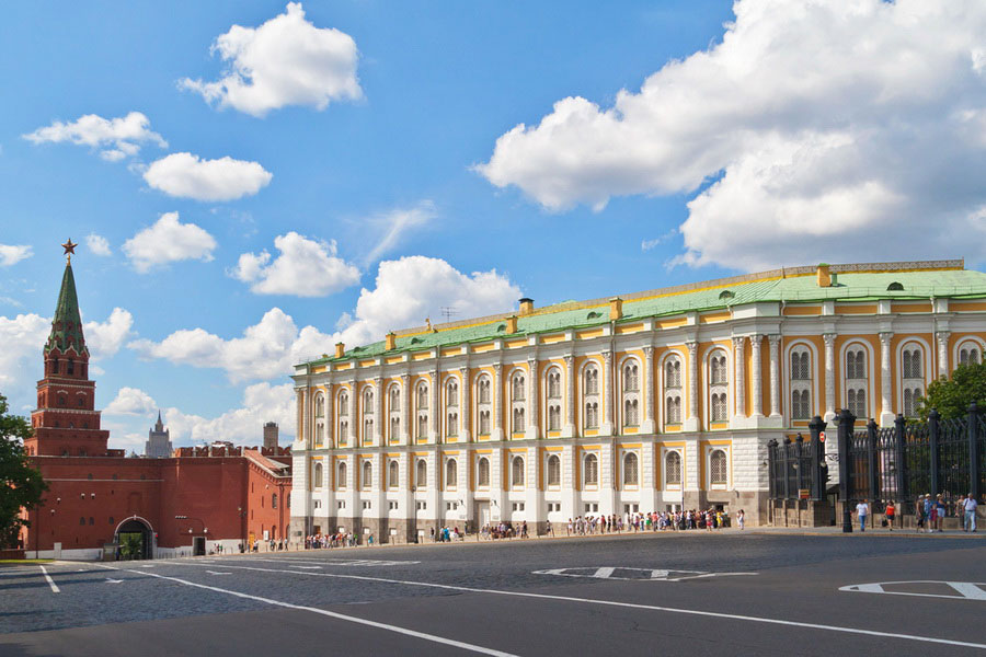 Pass by the Grand Kremlin Palace used for state and diplomatic receptions and official ceremonies.
